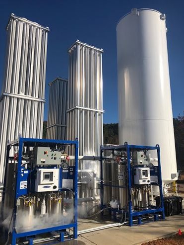 容積為 1000 和 5000 升的獨立式微型散裝撬裝塊,直接由低溫槽車補液,無需更換鋼瓶