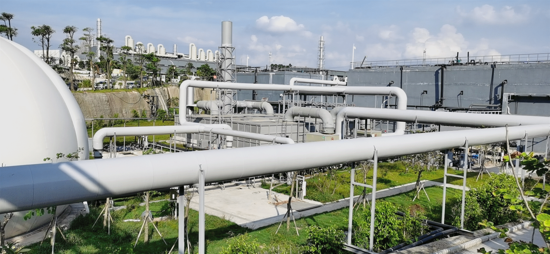 廣州東部固體資源再生中心內(nèi)的處理設(shè)施主要包括:第三資源熱力電廠、生物質(zhì)綜合處理廠(含餐廚綜合處理、死禽畜衛(wèi)生處理、糞便無害化處理)、市政污泥處理廠及公共配套工程的污水處理廠。本項(xiàng)目的污水處理廠是園區(qū)重要組成部分,用于處理園區(qū)內(nèi)產(chǎn)生的所有污水(包括高濃度污水和低濃度污水),達(dá)到回用標(biāo)準(zhǔn)并回用于園區(qū),實(shí)現(xiàn)園區(qū)污水“零排放”。